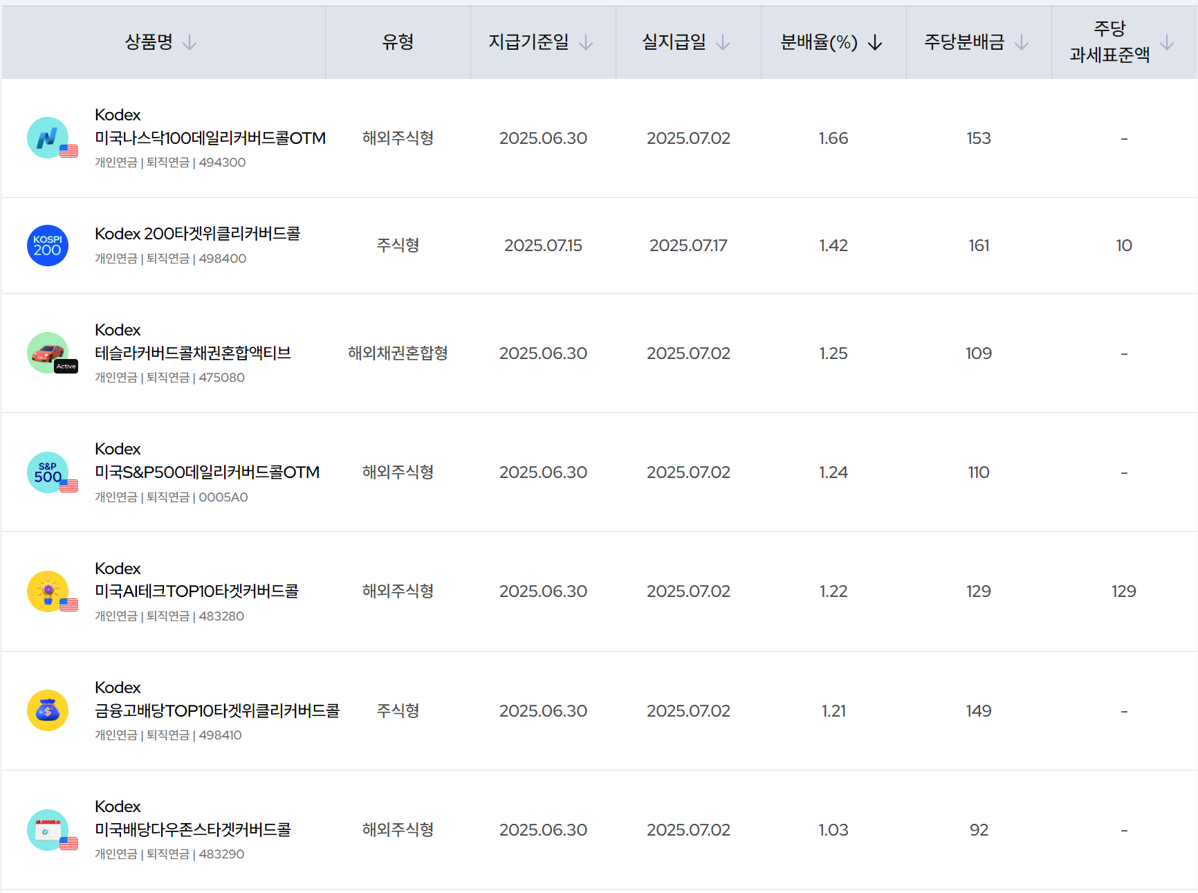 삼성자산운용 KODEX 월배당 ETF 7월 분배금 내역